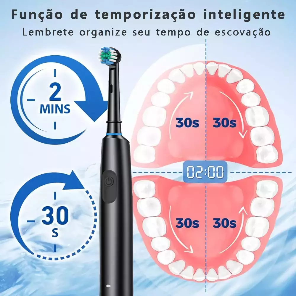 Graças à sua tecnologia de rotação inteligente, você terá resultados comparáveis a uma limpeza profissional, sem precisar gastar em consultórios odontológicos. Mais economia, mais praticidade e dentes visivelmente mais limpos desde a primeira escovação.